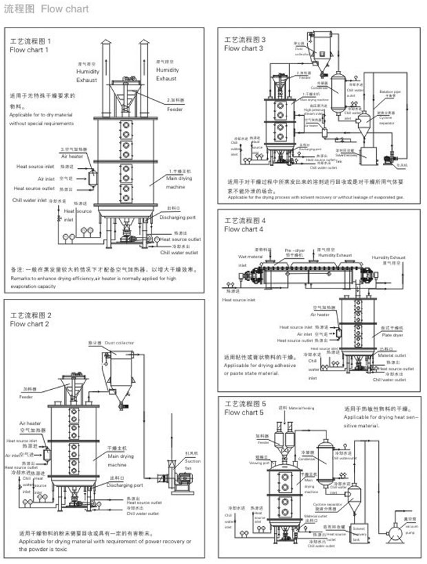 4.物料流向單一、無返混現象、干燥均勻、質量穩定、不需再混合。