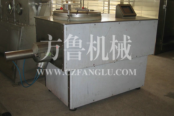 ?? 粉體物料與粘合劑在圓筒形容器中由底部混合漿充分混合成濕潤軟材,然后由側(cè)置的高速粉碎槳切割成均勻的濕顆粒。